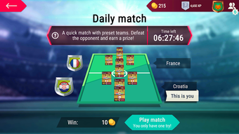 Dado que la mayoría de los repartos de cartas son aleatorios, te sentirás tentado a comprobar sus diversas características. Desde recoger monedas en las batallas hasta cumplir misiones diarias y semanales, esta aplicación tiene mucho que hacer para mantener ocupados a los jugadores. Al más puro estilo futbolístico, incluso puedes jugar en estadios ambientados en campos de fútbol. Además, aparte de tu alineación inicial, puedes robar cartas y ver si puedes sustituir a un jugador más adecuado.